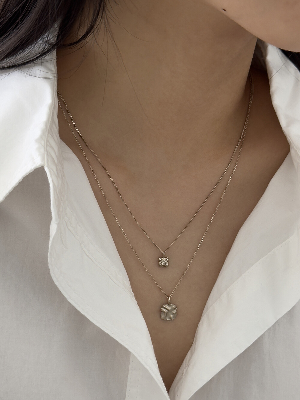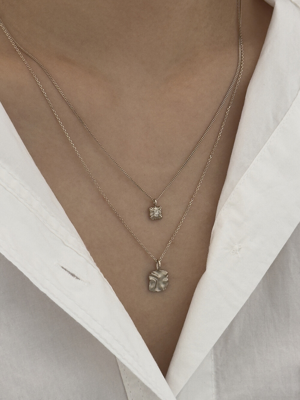14k Melted square necklace